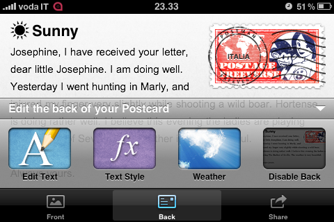 Un’applicazione davvero ben fatta dal punto di vista grafico e funzionale che ci permette di inviare delle cartoline virtuali ai nostri amici. Recensione iSpazio. Passa da 2,39€ a 1,59€ [Link iTunes].