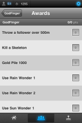 Il primo gioco, GodFinger, ha l’icona con due rolandos e un fulmine e, da alcuni indizi, come il nome “God” e i premi collegati a questo gioco, potrebbe rivelarsi una sorta di PocketGod ambientato nel mondo di Rolando. Un altro indizio relativo all’esistenza del gioco lo abbiamo da un tweet di Clive Downie, un dipendente di Ngmoco risalente al 23 Novembre del 2009.