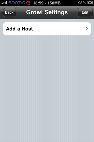 Una volta installata e lanciata l’applicazione, entrate in Growl Settings e successivamente cliccate su Add a Host inserendo questi dati: