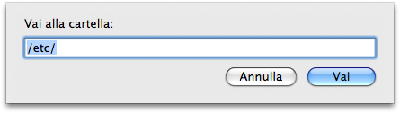 - Se siete utenti Mac invece, cliccate sull’icona del Finder e poi dal menu superiore selezionate la voce “Vai > Vai alla cartella”. Si aprirà una piccola finestrella nella quale scriverete “/etc/”. Non appena cliccherete su Invio si aprirà la cartella e dovrete trovare il file “hosts” per poi aprirlo con TextEdit.