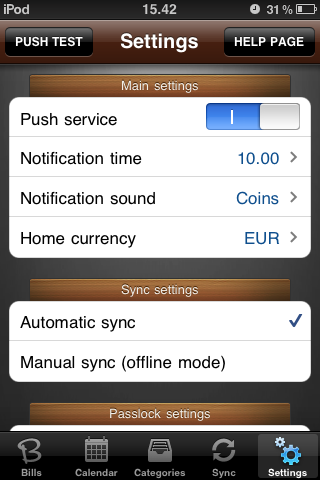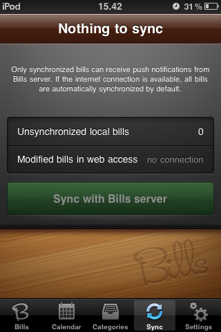 - La Sincornizzazione: Una delle funzioni più interessanti di Bills riguarda la possibilità di sincronizzarsi con un servizio online accessibile dal sito http://login.powerybase.com/ . In questo modo le nostre spese saranno sempre al sicuro e potremo modificarle e visualizzarle anche dal computer per poi rimetterle nell’iPhone. Nota: Il servizio di notifiche push di preavviso funziona soltanto se decidete di utilizzare anche il servizio online di Powerybase.