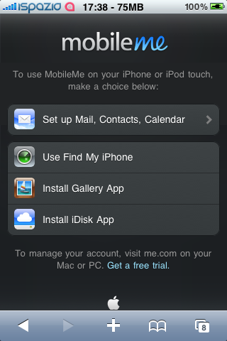 Da oggi quindi, accedendo alla homepage www.me.com, visualizzeremo una pagina ridisegnata che ci permetterà di accedere a varie funzioni tra cui quella Find My iPhone. Ci basterà inserire le credenziali d’accesso al servizio MobileMe e potremo consultare una mappa (ottimizzata all’iPhone) sulla quale verrà mostrato un indicatore relativo alla posizione dell’iPhone abbianto a quel determinato account. E’ utile quindi per capire la posizione di un iPhone smarrito appartenente ad un amico o un familiare.