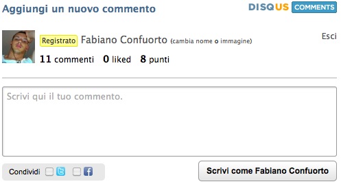 Il nuovo sistema di commenti Disqus, riesce ad interfacciarsi con i Social Network più famosi. Per questo motivo, noterete due iconcine nella parte inferiore del Box dedicato alla scrittura. Qualora decideste di spuntare una delle due, il testo del vostro commento verrà automaticamente pubblicato anche su twitter o facebook! Di default questa funzione è stata disattivata, quindi potete attivarla manualmente con un check alle caselline.
