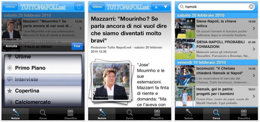 La TC&C, dopo il successo delle applicazioni TuttoMercatoWeb e MilanNews, ha pubblicato TuttoNapoli.net in AppStore. L’utility porta tutte le notizie del mondo azzurro sui nostri iPhone e iPod Touch.