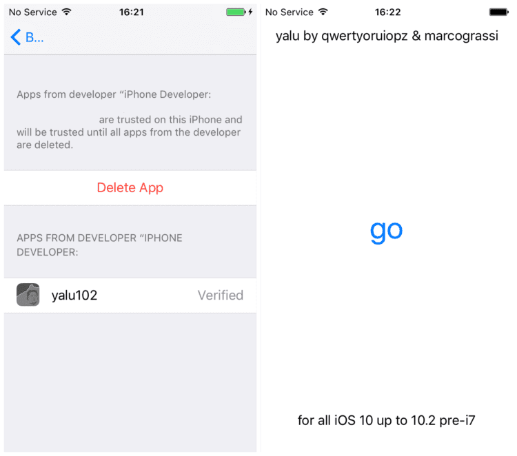 NOTA 2: Se per effettuare il jailbreak avete utilizzato un Apple ID normale o comunque fasullo, ogni 7 giorni per poter utilizzare Yalu dovrete seguire la guida partendo dal punto 5. Se invece vi fidate, ed avete inserito un vostro account reale, con il quale siete anche iscritti al programma di sviluppatori, allora questa procedura dura un anno. Tutto questo dipende dal fatto che l’applicazione Yalu, funziona grazie al profilo di configurazione installato, che ha una validità di 7 giorni per gli account “normali”, dopodichè perderà i permessi e l’applicazione crasherà non appena verrà avviata. Partendo dal punto 5, in pochi minuti riuscirete a ripristinare questa licenza e a riottenere l’applicazione Yalu perfettamente funzionante. Naturalmente, se il vostro dispositivo non viene mai spento o riavviato, non avrete necessità di tutto questo procedimento.