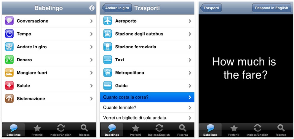 Un’ottima applicazione che contiene tantissime frasi comuni che siamo soliti dire quando ci troviamo in un paese estero. “Quanto costa?” “Potrei avere questo?” etc etc. Ciascuna frase è tradotta in 11 lingue e può risultare utile per le persone che viaggiano. Passa da 1,59€ a Gratis [Link iTunes].