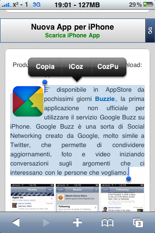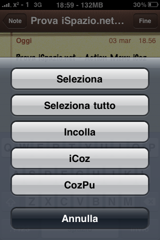 iCoz è un il plugin, che una volta installato, si dovrà attivare tramite le impostazioni di Action Menu, e permetterà di riprodurre il testo in una qualunque applicazione che permetta di usare le funzioni base del copia incolla. E’ possibile riprodurre tutto il testo, oppure soltanto la parte da noi selezionata. Possiamo anche decidere di interrompere la lettura in qualsiasi momento facendo un altro tap sullo schermo e selezionano il comando CozPu. L’applicazione funziona in qualsiasi lingua dato che si basa sul sistema vocale integrato, di conseguenza funziona solo con iPhone 3GS.