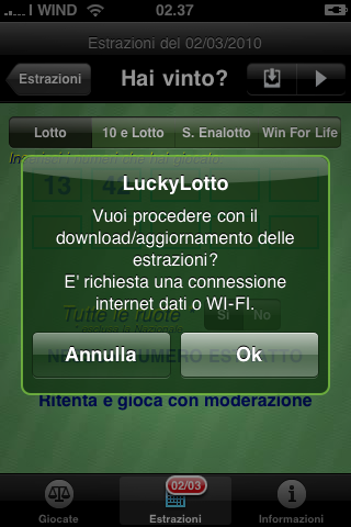 - Download delle estrazioni semplicemente tirando già e rilasciando la vecchia estrazione – Pull to refresh delle estrazioni;