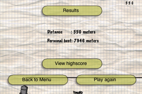 Nella schermata finale, che vediamo soltanto dopo la morte, possiamo vedere il nostro punteggio assieme al record personale, iniziare nuovamente il livello oppure entrare nel profilo OpenFeint per visualizzare i risultati degli amici.