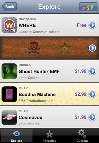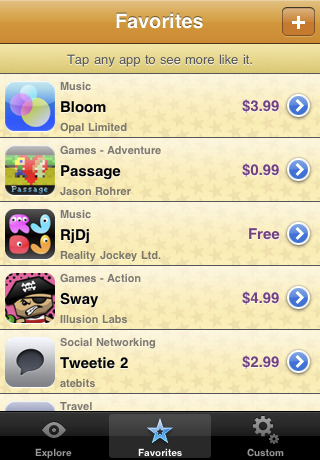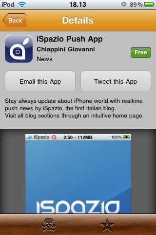 Quando troviamo un’applicazione che ci interessa, possiamo toccare la freccia blu per entrare nelle informazioni e poi toccare il prezzo per entrare nell’AppStore. Possiamo inoltre fare uno slide sull’applicazione per impostarla come preferita o per metterla nella lista delle app da non visualizzare più.
