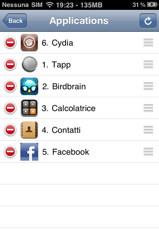 Una volta installato da Cydia, dovremo aggiungere le applicazioni che preferiamo nelle impostazioni dell’applicazione cliccando sul “+” che comparirà in alto. Una volta fatto ciò possiamo cambiare l’elenco delle applicazioni che abbiamo aggiunto alla lista in modo da far lanciare prima una o l’altra. Per avviare le nostre applicazioni ci basterà cliccare più volte sull’icona Tapp e leggere in alto il nome dell’applicazione per lanciare quella che preferiamo.