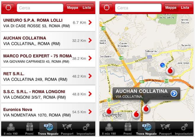 - Trova Negozio: per trovare il negozio Vodafone più vicino a te grazie alla localizzazione;