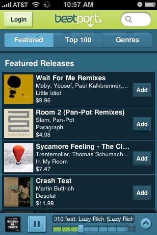 E’ da poco disponibile su AppStore BeatPort, l’applicazione ufficiale dell’omonimo sito che porta su iPhone il catalogo di musica di Beatport. Per chi non lo conoscesse, si tratta di un Music Store online specializzato nella musica elettronica, dance, house e via dicendo dove è possibile acquistare brani e ascoltare l’anteprima in alta qualità dei pezzi.