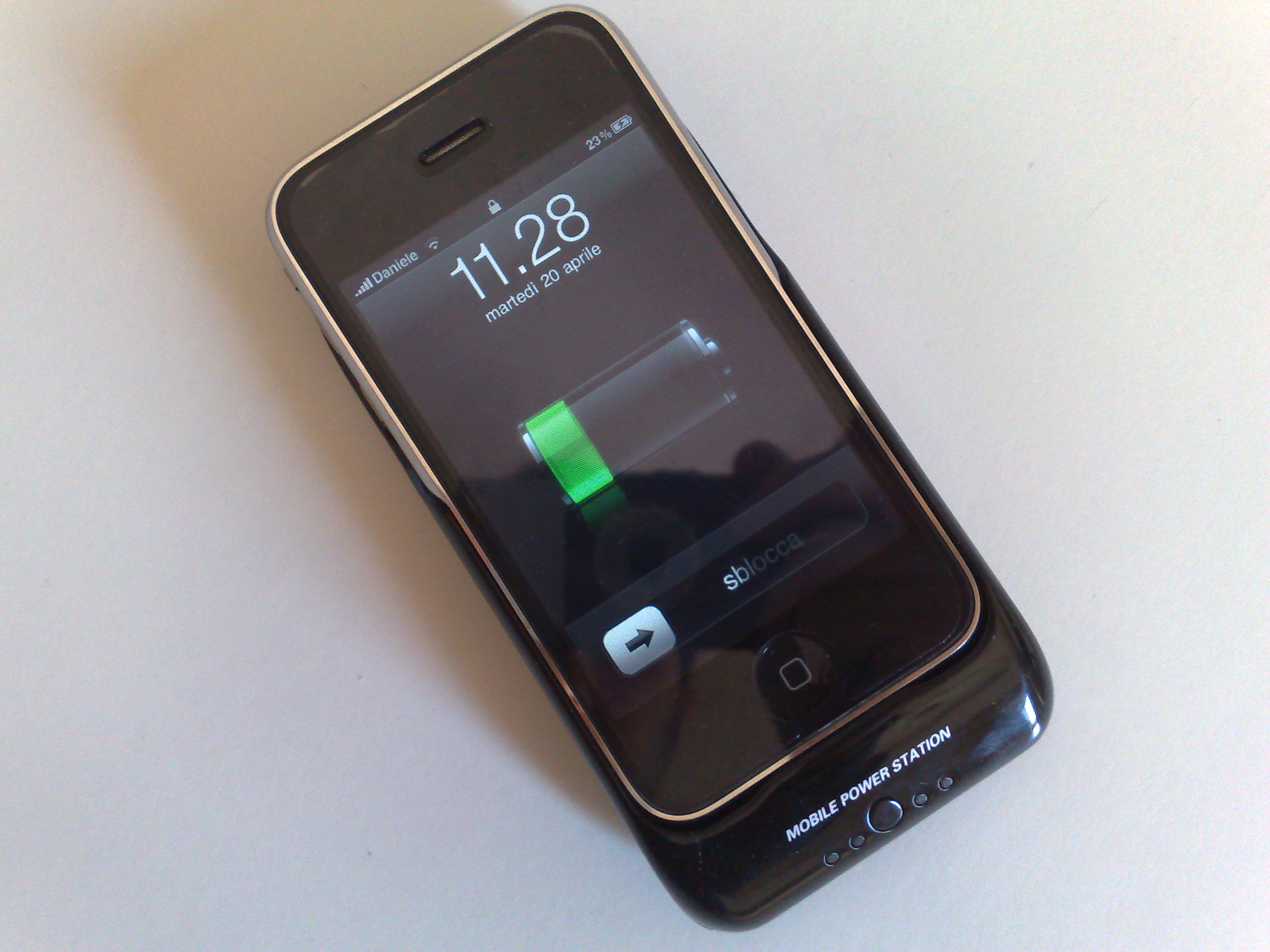 L’oggetto è in plastica ma risulta ben costruito, inoltre è molto leggero per essere facilmente trasportabile. Sulla parte anteriore troviamo un pulsante che ci permette di verificarne la carica tramite dei LED che ne segnalano il livello. La batteria di cui dispone è di 2100mAh/3.7V e partendo da un iPhone 3GS, quasi del tutto scarico, lo si riesce a portare ad un buon livello di carica del 60/70% (naturalmente questo dato è variabile a seconda di fattori come notifiche push attive o utilizzo di navigazione gps).